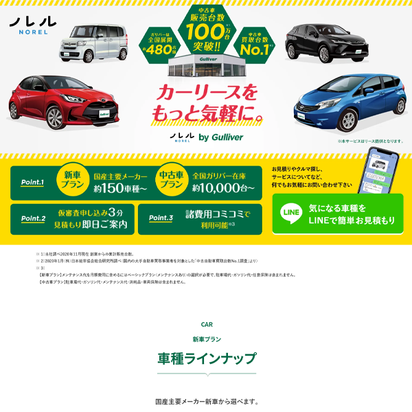 • 新車は約150車種の他、ガリバー中古車約10,000台の幅広い選択肢から選べる